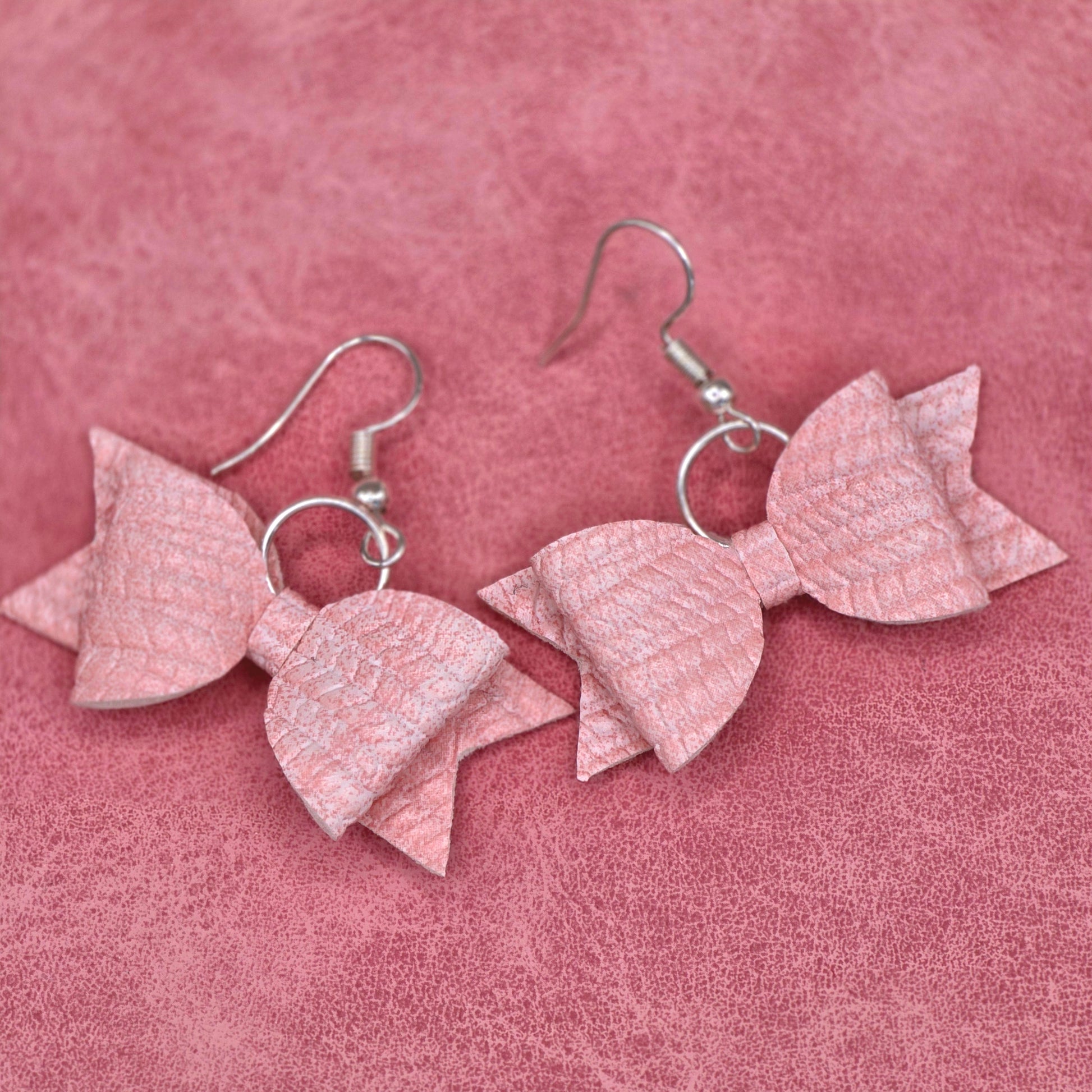 Pink Crocodile Vegan Leather Bow Earrings